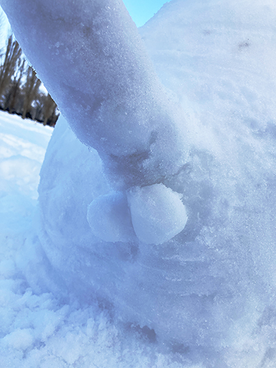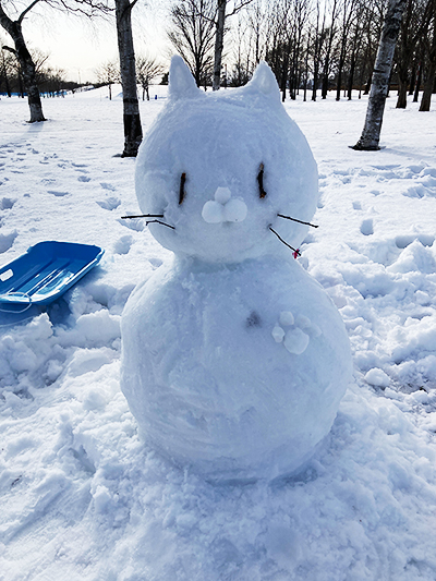 本日の雪だるま ひとこと日記 2026.01.11 娘と作りました。猫の雪だるま。 お尻は娘担当で、「しっぽ」と「たまたま」が付いてました。「こだわって作った部分だから是非ブログに載せて欲しい」と娘に言われたので載せます。